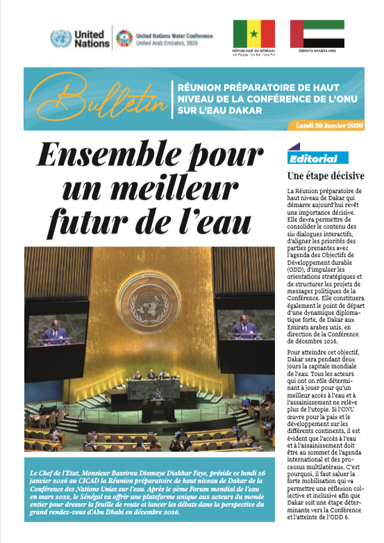 Nouvelle parution : Bulletin “La Réunion préparatoire de haut niveau de la Conférence de l’ONU sur l’eau”. Dakar lundi 26 janvier 2026